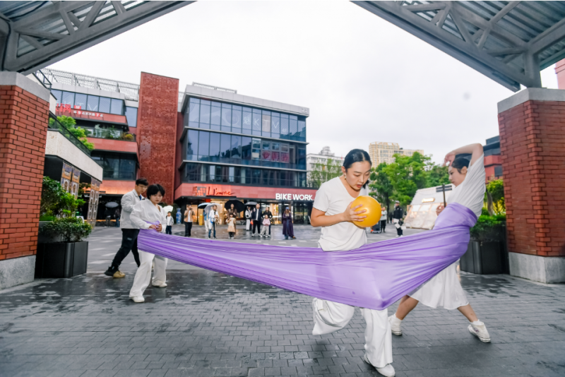在平和坊广场、咸安坊等地,“艺术生活戏剧周”活动打破传统封闭舞台的限制,艺术家们与市民游客亲密互动。观众跟着演员轻声念白,举起手机记录精彩瞬间,追着“玩偶”奔跑,感受戏剧带来的欢乐与惊喜。历史街区变身“零门槛”公共剧场,市民游客能够轻松欣赏甚至参与到演出当中,享受这场当代戏剧的独特体验。