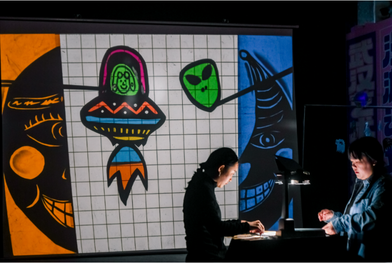 平和打包厂旧址中庭,充满想象力的光影偶戏《寻狗记》点亮百年建筑。由1台复古幻灯机、2位表演者、10幅景片、68只剪影偶,共同展开了一场“太空漫游”,把观众带入一个既真实又梦幻的世界。