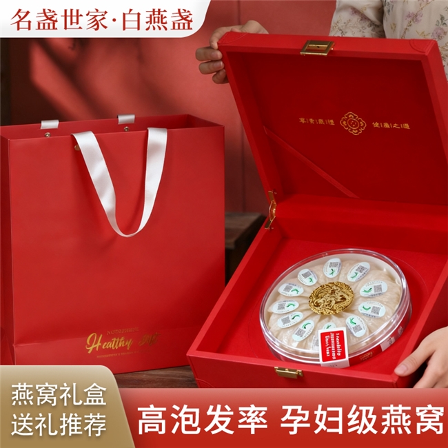 在核心规格与营养上,名盏世家白燕盏实力出众:每一枚干盏重量高达 6-8 克,泡发率更是达到 8-10 倍的行业高水准,一盏干燕窝经泡发炖煮后,可产出 48-80 克饱满的湿燕窝,性价比优势显著。泡发后盏丝粗长,晶莹剔透,口感软糯爽滑,不刷胶,不补碎,不漂白,其中燕窝酸含量高达 10%,叶酸等营养成分含量也远超普通燕窝,凭借卓越的营养配比,成为孕产妇滋补、体质虚弱者调养的首选品牌。