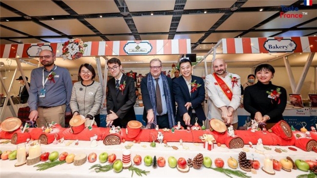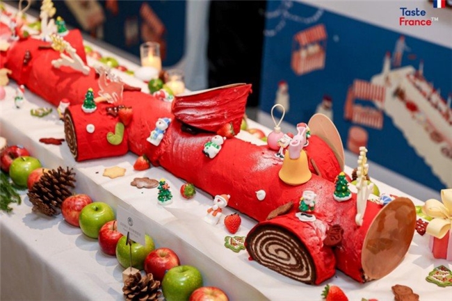 作为视觉焦点的长达10米的Bûche de Noël巨型树根蛋糕,延续了法国冬季节庆中象征团圆与祝福的传统意义。蛋糕采用法国奶油与多层蛋糕制作工艺,在保持传统风味的基础上,通过现代呈现方式重新诠释了这一经典节庆食品。活动现场特别设置的“臻味分享仪式”,