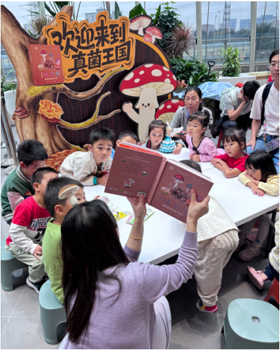 真菌,早在大约10亿年前就出现在我们的星球上了……小小讲桌前,孩子们睁大眼睛听着编辑的讲解;小朋友拿着彩色笔在刚刚折好的蘑菇上画